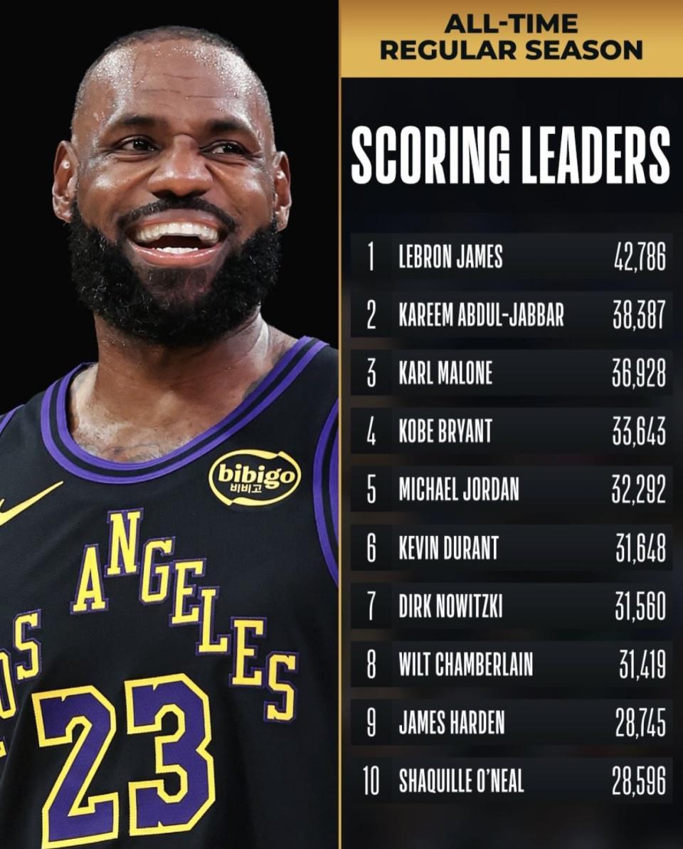 再往上看,科比33,643分、卡尔·马龙36,928分都在更远的位置上,差距已经不是“短时间几场球”能追完的级别。