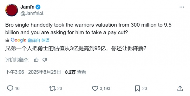 网友Hub发问:“我好奇为什么从没人让库里降薪啊?哈哈哈……”引发了热烈讨论: